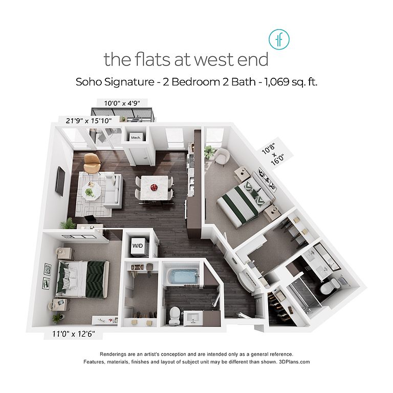Yes, The Flats at West End has in-unit laundry for some or all of the units. The Flats at West End also has shared building laundry.