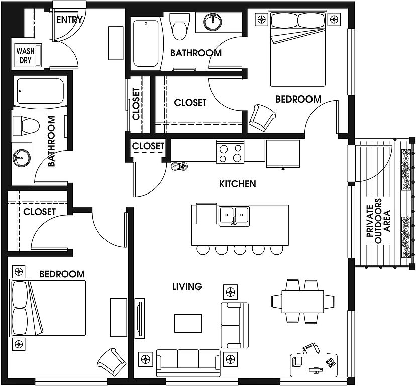 - Lounge: Community Lounge With A Full Kitchen, Seating, And