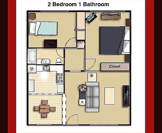 - Bedrooms are decent-sized rooms with floor-to-ceiling closets.