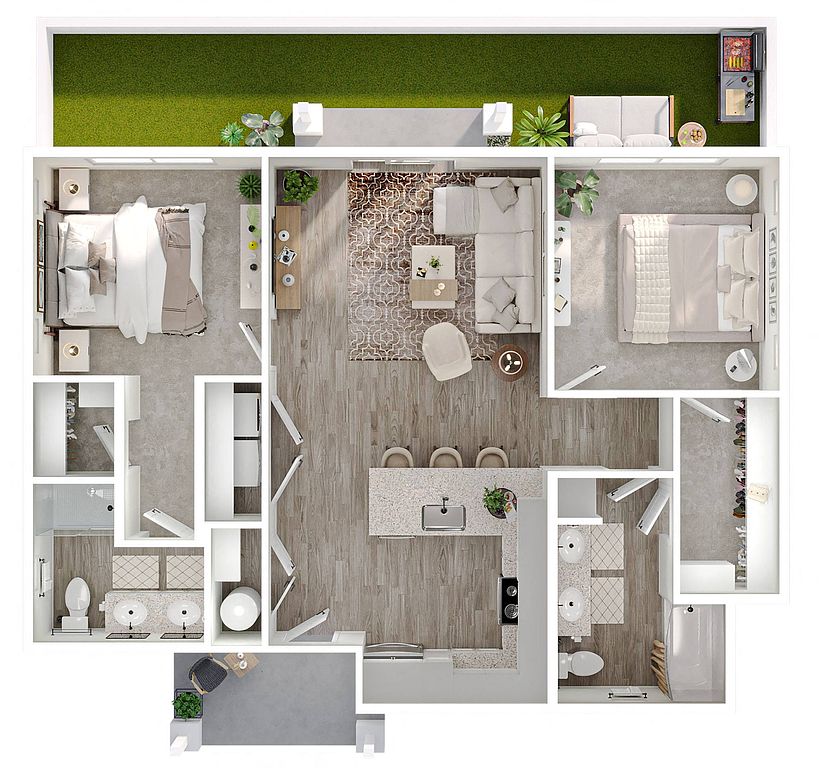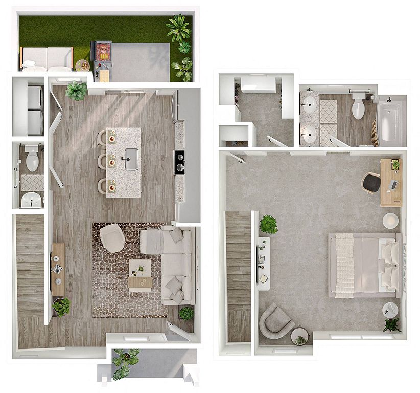Gorgeous interior finishesFull-size washers and dryersSpacious open conceptStylish wood-like flooringGranite countertopsBreakfast barsLarge private backyards