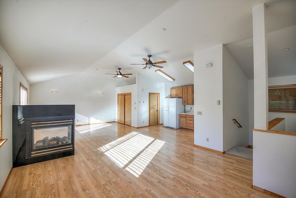 Modern kitchenAttached garageAmple storageCozy fireplace