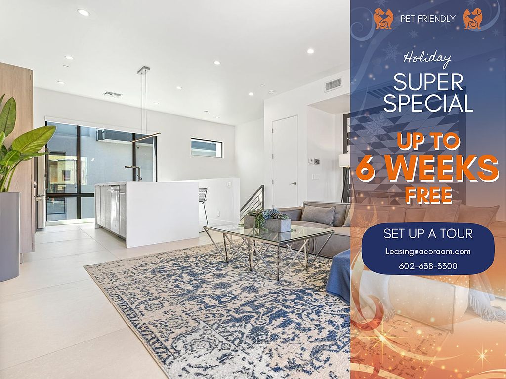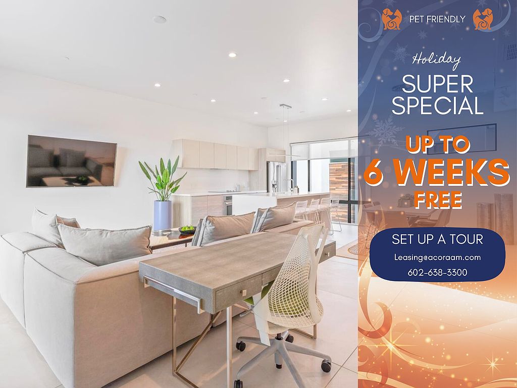 - Special offer! *HOLIDAY MOVE-IN SPECIAL! FIRST MONTH FREE WHEN SIGNING A 13-MONTH LEASE OR 6 WEEKS FREE WITH AN 18-MONTH LEASE!*Expires October 15, 2026
