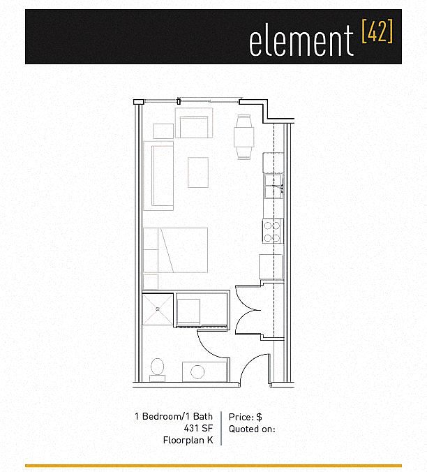 To have a cat at Element 42 there is a required deposit of $300. This building has monthly fee of $50 for cats. To have a dog at Element 42 there is a required deposit of $300. This building has monthly fee of $50 for dogs.