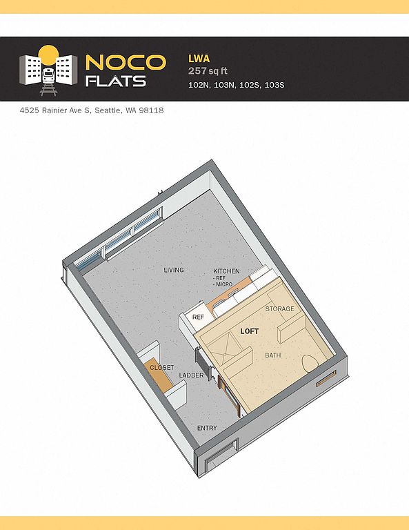 NOCO Apartments is in the Columbia City neighborhood in Seattle, WA.