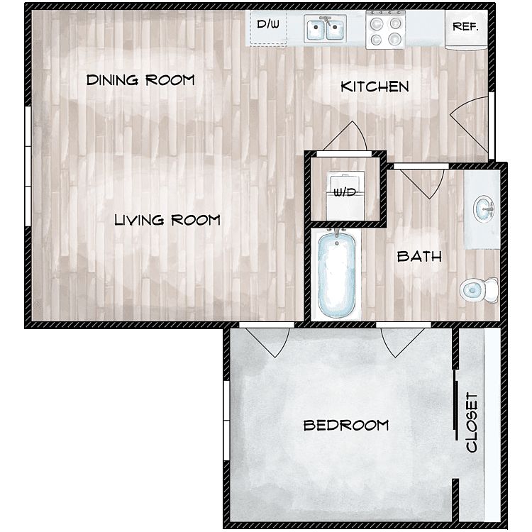 At Polaris at Lake City we offer studio, one, two, and three-bedroom apartments for rent designed with a seamless fusion of chic design and cozy living. Cook effortlessly in a modern kitchen outfitted with stainless steel appliances. Each home has a full-size washer and dryer, carpeted bedrooms with large closets, and luxury vinyl plank flooring.