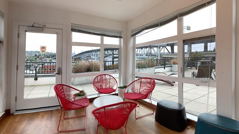 We offer studios and lofted apartments with an in-unit bathroom, closet space, fridge, microwave, and a cooktop. These newly built studios feature large double-pane windows shining natural light, vinyl hardwood flooring, and new appliances. Our stunning rooftop deck has mountain, water, and city skyline views, along with a community BBQ and rooftop enclosed study room with free Wi-Fi open to all tenants. You can use secure bike storage & storage lockers when you'd like.