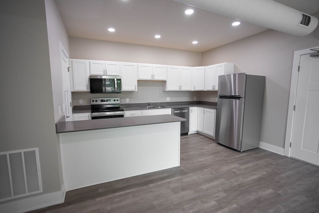 Experience modern living at the brand-new Riverbend Apartments. These high-efficiency, all-electric homes offer three bedrooms and two bathrooms with 9' ceilings for a spacious, open feel. The full kitchen features stainless steel appliances, quartz countertops, and durable LVP flooring throughout main living areas, while bedrooms include plush carpet and ceiling fans for comfort. Enjoy the convenience of an in-unit stacked washer and dryer and onsite mailboxes.