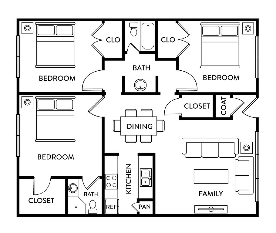 Spacious apartmentsCozy living spacesLarge closetsFully equipped kitchensPlentiful closet space
