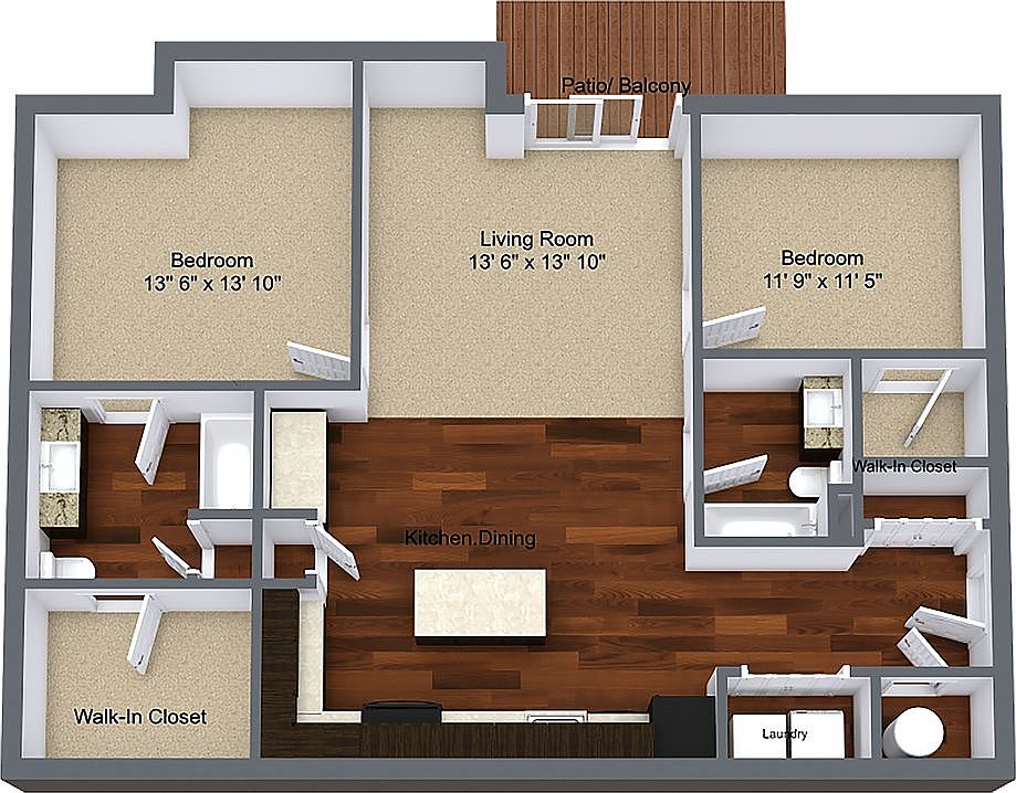 At Lodgepole Creek, you'll enjoy spacious one, two and three bedroom apartment homes with open floor plans and a personal garage. Our large kitchens feature plenty of cabinets and counter space, including a center island and hardwood flooring for a modern look and feel. Plenty of closet space, including a walk-in closet, washer and dryer, patio or balcony, and natural light from many windows finish off this well-designed apartment home.