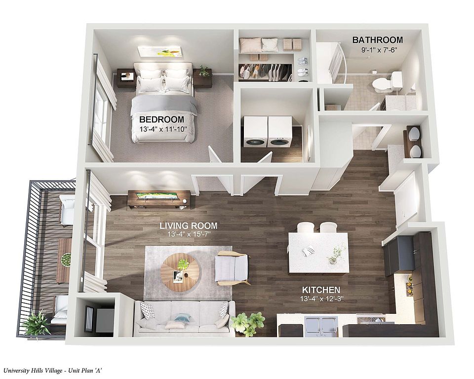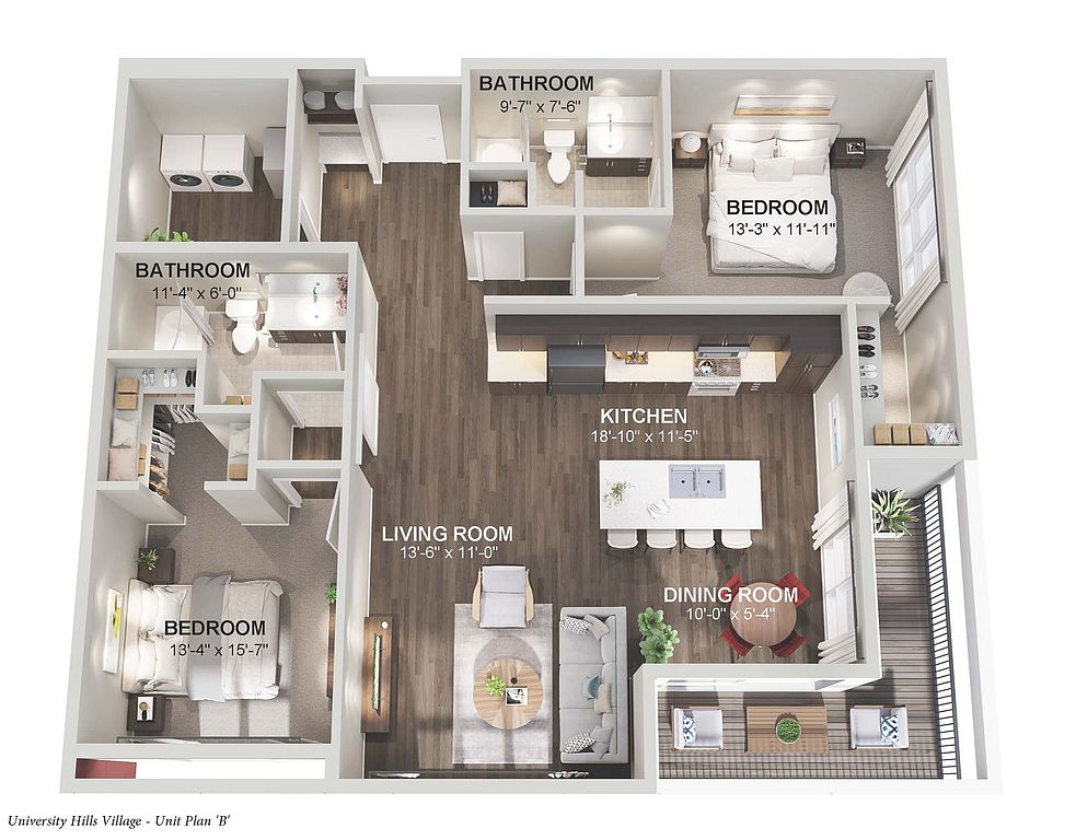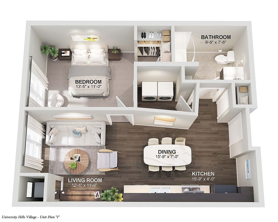 Yes, University Hills Village has in-unit laundry for some or all of the units.