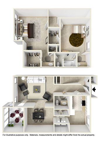 Luxurious one- or two-bedroomLoft-style layoutsSpacious closetsCentral air conditioningKitchens with granite countertopsEnergy-efficient appliancesVaulted ceilings