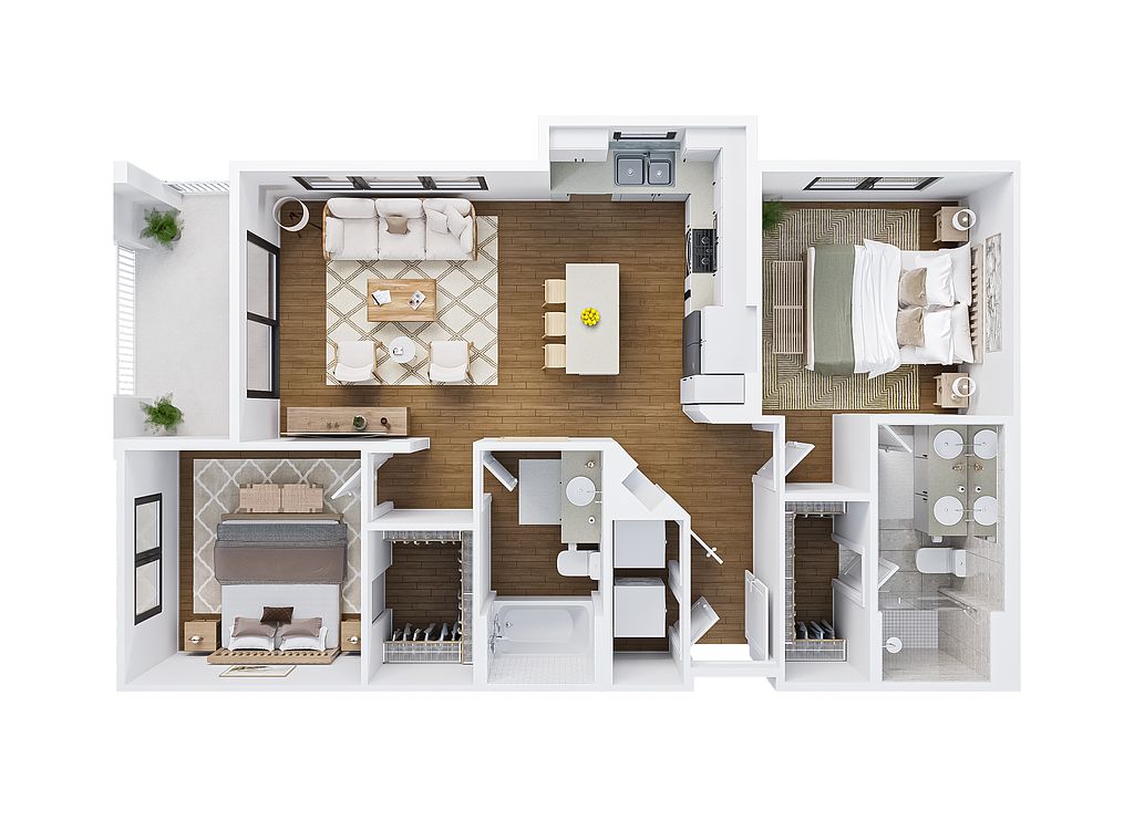 At RIVA, the spirit of resort living meets the comfort of home inviting you to vacation where you live. Each home features premium stainless steel appliances, a built-in wine fridge, spacious walk-in closets, private balconies or patios, an in-home washer and dryer, detached garages, central air and heat, and modern kitchen islands.