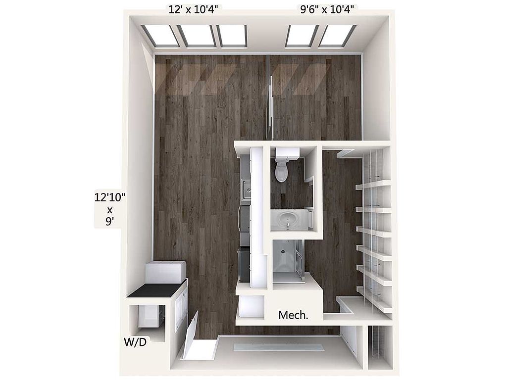 Urban-inspired designHigh ceilingsSpacious customizable closets