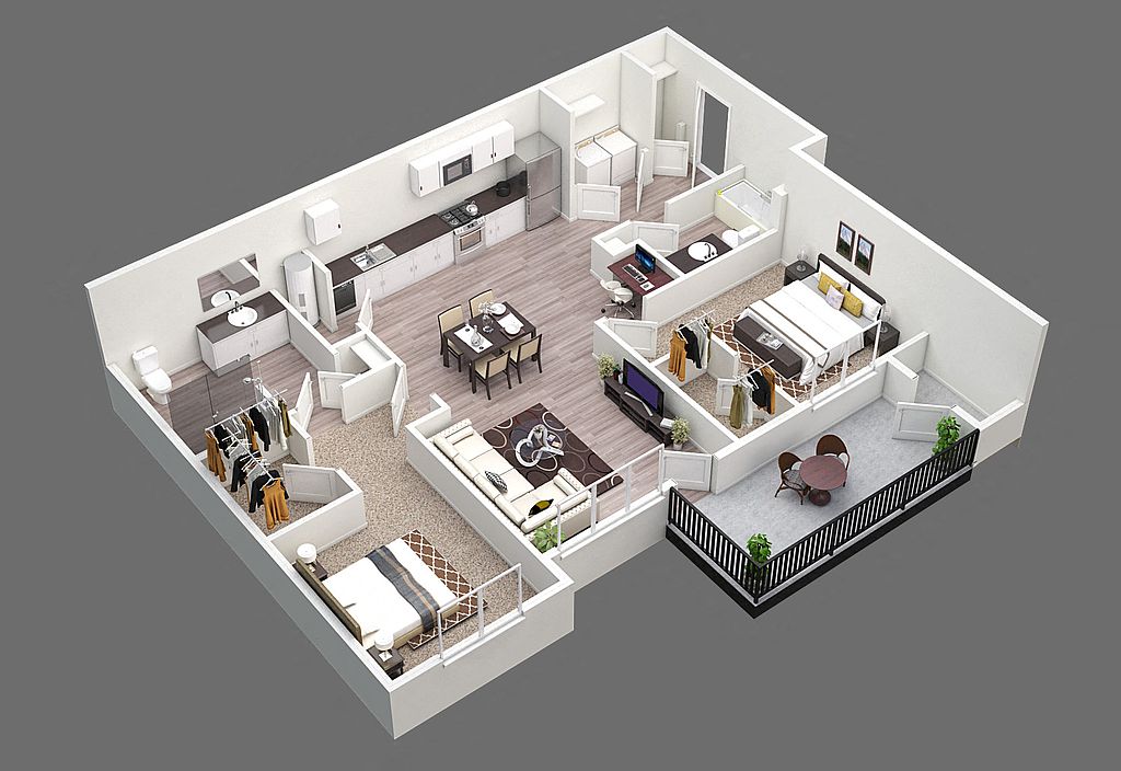 - Updated One-, Two- And Three-bedroom Floor Plans