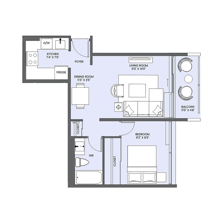 Private balconiesQuartz countertopsAir conditioningOpen concept kitchenCustom window coveringsStainless steel appliances