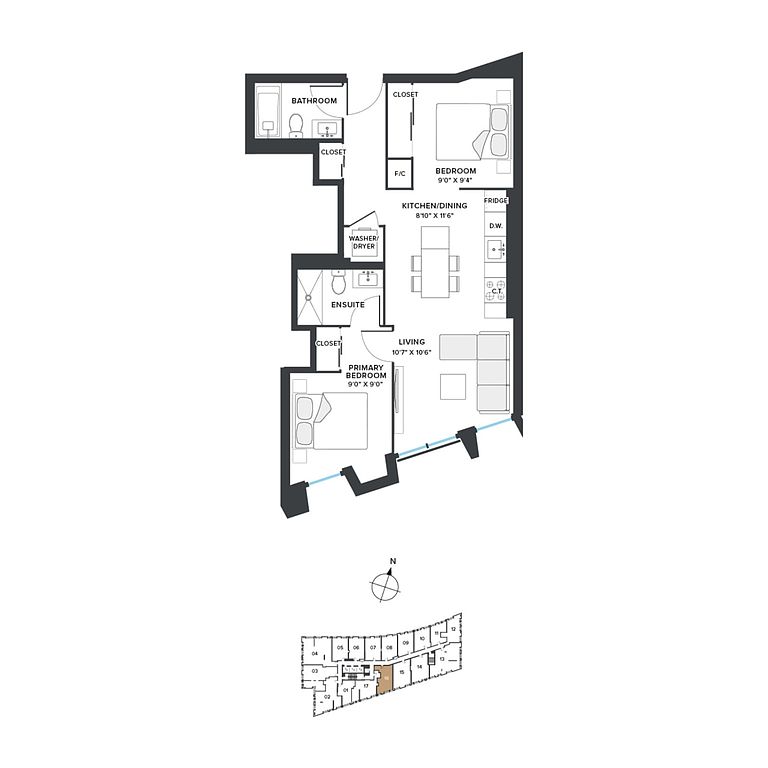 - In-suite washer and dryer