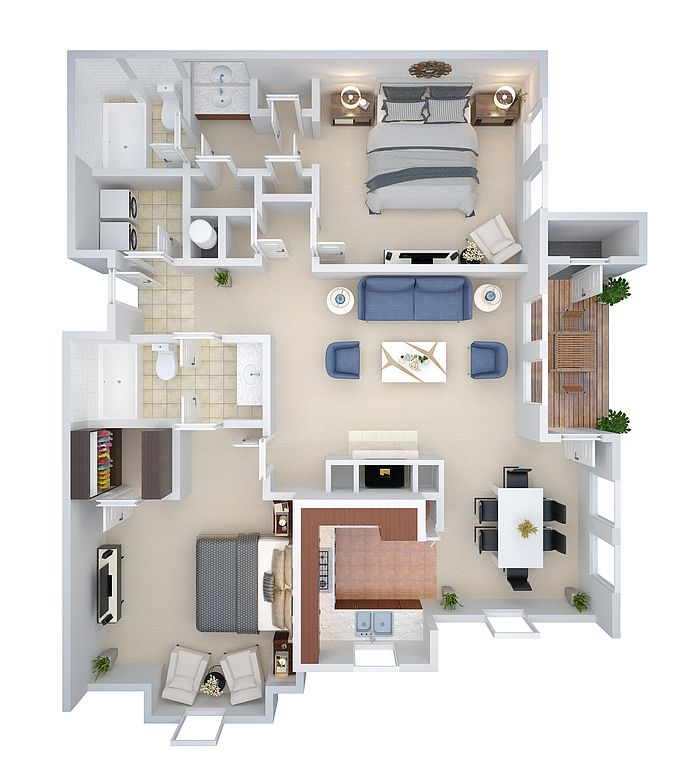 We offer 4 different floorplans to choose from and our spacious apartments feature stainless steel appliances, washer and dryer connections, generous walk-in closets, fireplaces*, high speed internet, extra-large living spaces, vaulted ceilings, large patios, keyless locks and garages.