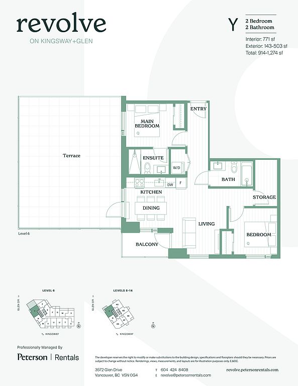 Expertly envisioned by Peterson, Revolve offers a rare opportunity to live in a brand new, purpose built rental on Kingsway. Rising 14 stories to redefine the skyline, Revolve acts as the axis of culture and connection where the vibrant energy of the Kingsway corridor pairs with a contemporary vision of distinctly refined living. Managed by Peterson Commercial.