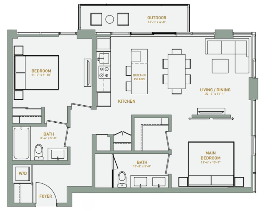 The sophisticated and timeless design creates a masterpiece to step into and exploreexperience floor-to-ceiling windows with picture-perfect views and ample natural light. A multi-functional waterfall island in the kitchen creates space to work, dine or entertain from home, and a full-size soaker tub offers an instantaneous escape to wind down. Discover more of what Viridian has to offer.