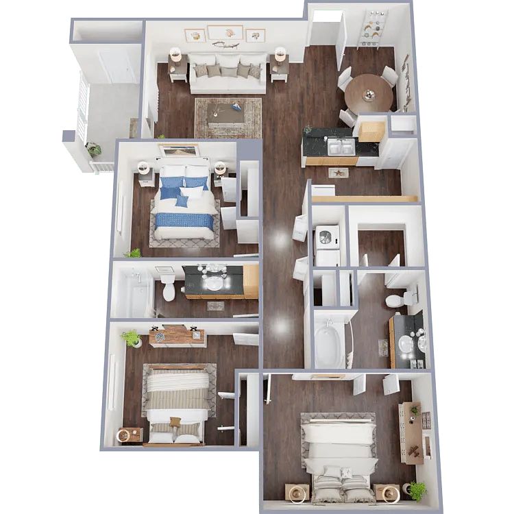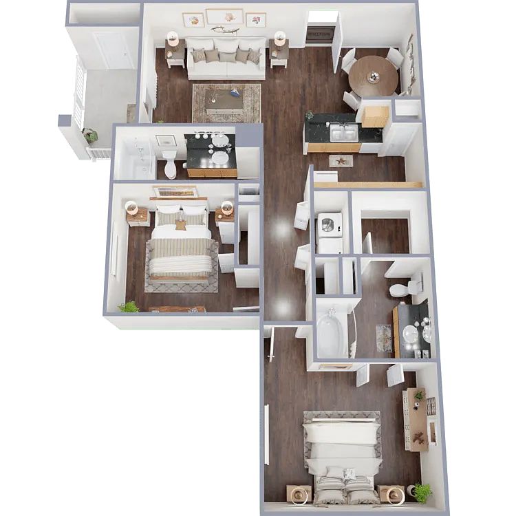 Welcome home to Point Royale Apartments! Settle into one of our one, two, or three bedroom apartments. If you are searching for an inviting and relaxing space, you're in luck! Every apartment offers spacious living areas, fully-equipped kitchens, nine-foot ceilings, elegant crown molding, wood-style laminate flooring, large walk-in closets, and private patios to ensure that you'll love calling Point Royale Apartments home.