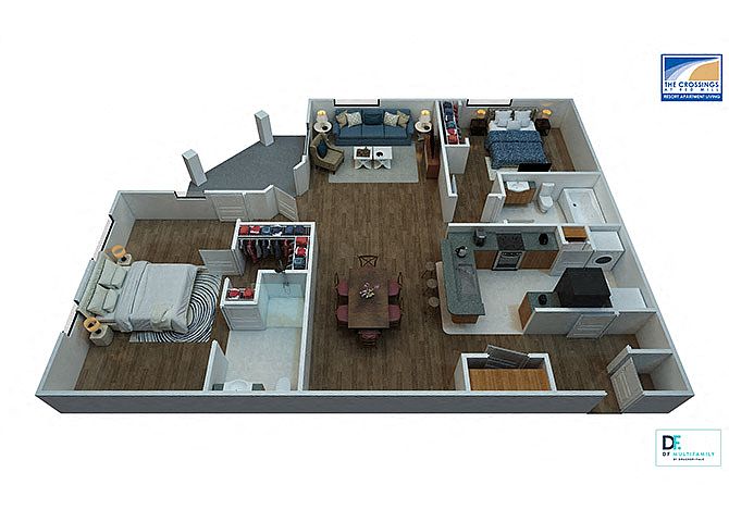 Yes, 3D and virtual tours are available for The Crossings at Red Mill.