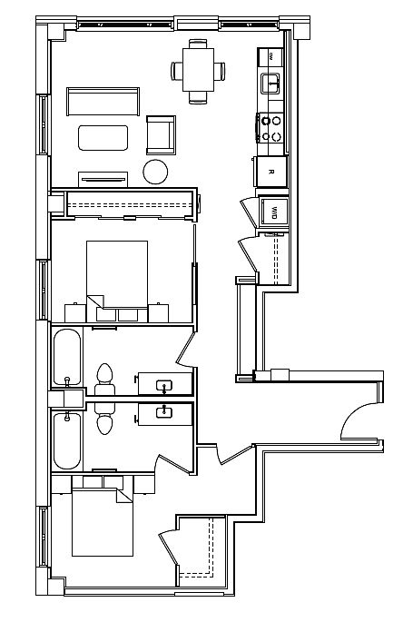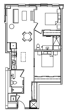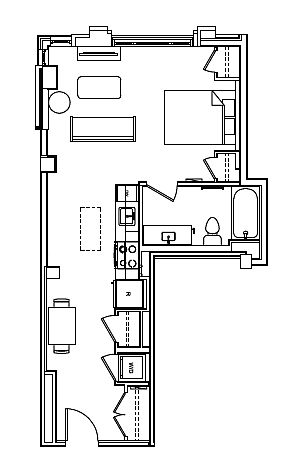 Studio 1 ba424 sqft