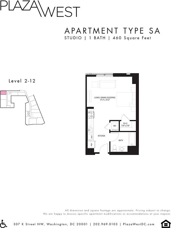Plaza West on K with an entrance at 307 K Street NW includes 173 units for individuals and families. The unit mix includes studio, junior 1-bedroom, 1-bedroom, and 2-bedroom units. With excellent access to neighborhood services, including grocery stores, shopping, transit, public facilities (library, rec center, schools), as well as a range of onsite amenities, Plaza West provides residents with comfort and convenience.