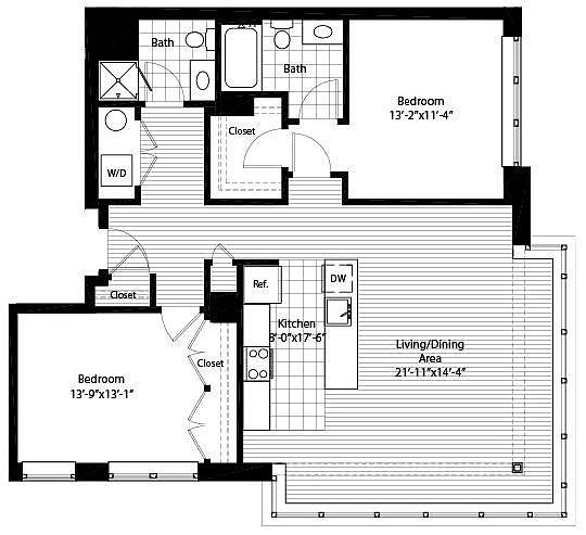 Studio 1 ba474 sqft
