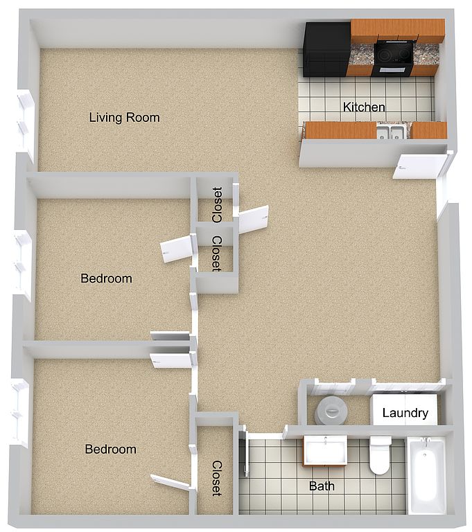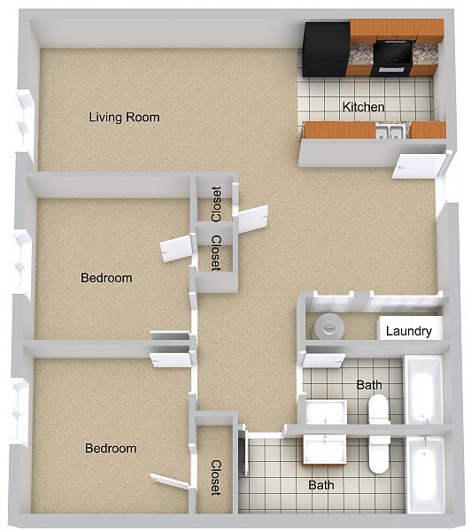 - Two Bedroom One Bathroom