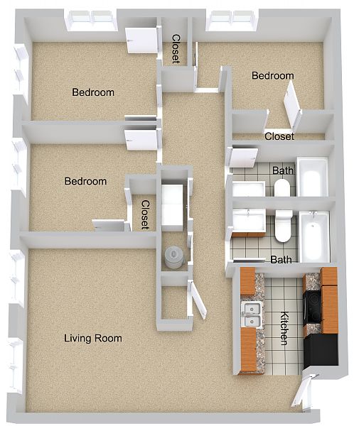 - Three Bedroom 2 Bathroom