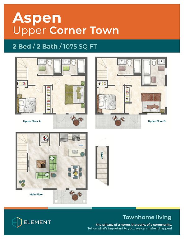 All the perks of townhome living without the stress of homeownership. Modern 1, 2, 3 & 4 bedroom Townhomes now renting in Prairie Pointe. Element townhome community offers the lifestyle you have been looking for private entrances, gourmet kitchens, and welcoming, multi-level living with large, bright light-filled rooms.