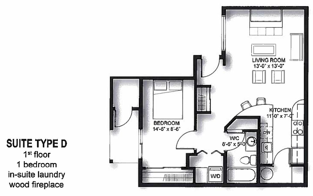 1, 2, 3 Bedroom suites available. Open concept design, new maple kitchen cabinets, 3 new kitchen appliances. New in-suite full size washer and dryer. New windows and patio doors. HRV - Heat Recovery Ventilator. Wood burning fireplaces in most suites. One parking stall included, additional parking available.