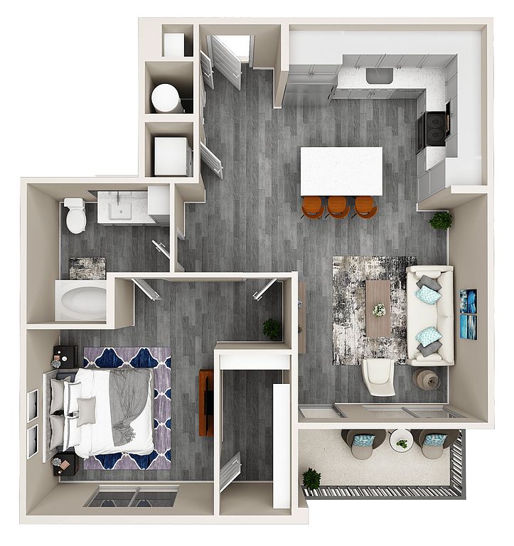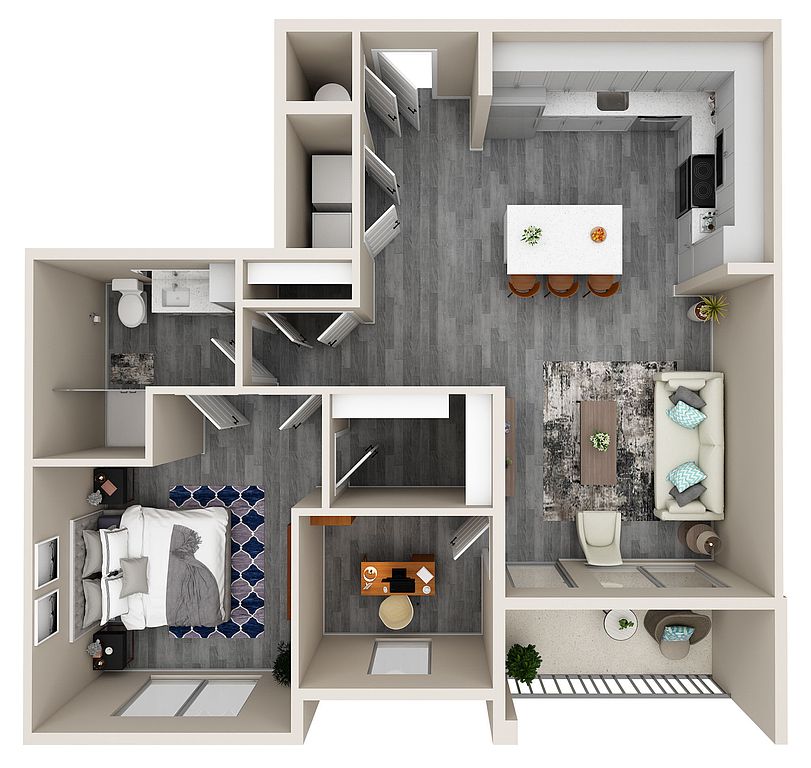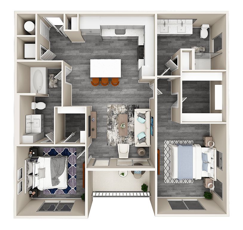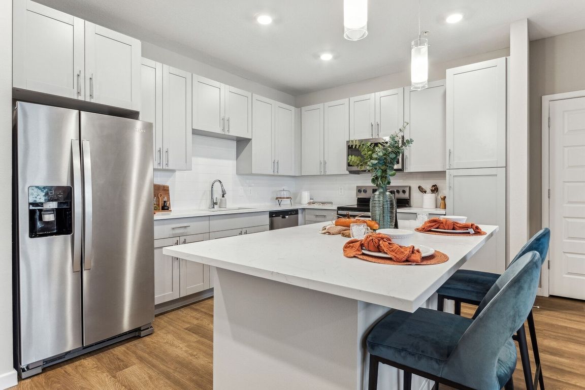 - Hard Surface Counter Tops: Fully Equipped Gourmet Kitchens w/ Quartz Counters