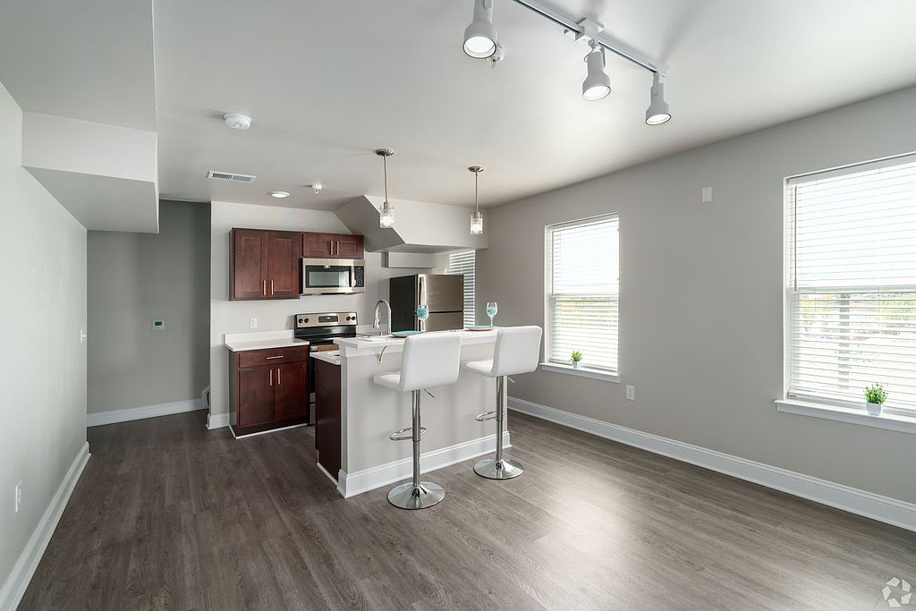 Immerse yourself in a harmonious blend of style and comfort with ZOE our modern 1 bed, 1 bath apartment. The beautiful kitchen welcomes you with a seamless flow to a stylish bar top counter, leading to a spacious living room.