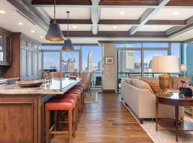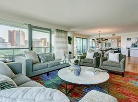 Luxurious 7th floor unit overlooking Columbus skyline with river views, open floor plan, floor to ceiling glass windows, large primary suite, 24 foot balcony, refinished wood flooring, and fresh paint throughout. Kitchen has stainless steel appliances, refinished cabinets, and built-in custom bar. Primary suite includes walk-in closet, motorized blinds, brand new carpet, linen closet and jacuzzi tub. Large utility room with washer/dryer and sink. 2 parking spots and additional storage room located in the building. Association dues are included: 24/7 concierge, social rooms, fitness, sauna, steam room, pool and more. Water and gas also included. Tenant pays electric.