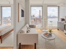 *NOW OFFERING: 1 MONTH FREE ON 12 MONTH LEASE* Sun-flooded south-facing alcove studio with separate sleeping area and massive floor-to-ceiling windows encompassing spectacular views of the East River, Downtown Manhattan, Domino Park, and Williamsburg Bridge.