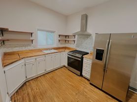 Step into this beautifully refreshed, character-rich apartment that blends classic architectural charm with modern convenience. High ceilings, tall windows, and warm hardwood floors create a bright, inviting atmosphere throughout. The updated kitchen includes stainless steel appliances, a gas range, a spacious side-by-side refrigerator, and a stylish range hood. Custom wood countertops and open shelving provide warmth and functionality, paired with crisp white cabinetry and a stone tile backsplash. The room's layout makes cooking easy and enjoyable. A stunning, oversized living room features a bay of large windows that flood the space with natural light. Original wood floors detailed trim work, and a decorative mantle add elegance, while a modern ceiling fan brings updated comfort. The additional rooms showcase more beautifully detailed mantles with built-in shelving and plenty of storage.