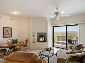 Beautifully updated, fully furnished ground-level condo. Move-in ready with everything you could possibly need. Condo features wood-look laminate flooring throughoutcompletely carpet-freeupdated bathrooms, walk-in showers, a double-sink vanity in the primary suite. Enjoy a bright, open floorplan with a spacious kitchen, breakfast bar and dining area, living room with fireplace. Step outside to an expansive covered patio complete with a second fireplace and east-facing views of the golf course, Red Rock, and surrounding mountains. Enjoy beautiful sunrises and moon views year-round.