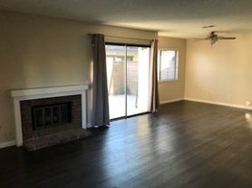 2 Bedroom, 2 1/2 bath condo (Dual masters with balcony). Both rooms have walk-in closets and private baths. Granite counter tops in the kitchen with refrigerator, stove/oven and microwave. Upstairs laundry room with washer/dryer included, central air, 2 fireplaces (1 in master bedroom and 1 downstairs, hardwood type floors downstairs, 2 car attached garage with direct access, private backyard with patio, community pool & spa. Plenty of guest parking. Close to freeway and shopping. This is a non-smoking property and there are no pets allowed.
