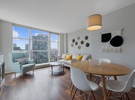 Modern 1 Bedroom + Den + Flex at Brava Across from Emery Barnes Park Live at Brava, one of downtown Vancouver's most desirable buildings, steps from Yaletown shops, dining, and Choices Market. This bright corner suite offers floor-to-ceiling windows, engineered hardwood floors, and an open layout with a gourmet kitchen featuring granite counters and stainless steel appliances. Enjoy in-suite laundry, a private BBQ-friendly balcony, parking, and storage. Building amenities include a 24-hr concierge, pool, hot tub, sauna, gym, theatre, and guest suites.