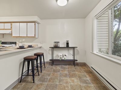Entry level apartment in an charming home with bay windows, hardwood floors, granite counter tops, built in cabinets, separate entry way, mud room and patio space with lots of natural light. Shared laundry unit downstairs.