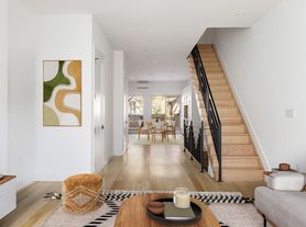 As you step inside, the warmth of the hardwood floors welcomes you into an airy open layout that seamlessly connects living spaces, making it perfect for both relaxing and entertaining. The gourmet kitchen is a culinary enthusiast's dream, featuring top-of-the-line stainless steel appliances, stone countertops, and a wine refrigerator. Adjacent to the kitchen, a convenient powder room adds to the thoughtful design of the main level.
