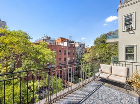 Upstairs, you'll find the primary suite with a jacuzzi tub, and a 130-square-foot private terraceperfect for morning coffee, sunset drinks, or just some quiet outdoor time. Downstairs, there are two additional roomsa bedroom and a flexible office/guest loftplus a bright, open living and dining area. The open kitchen boasts stainless steel appliances and the living room's high ceilings are highlighted by floor-to-ceiling built-in bookshelves. With custom California closets, there's more than enough storage for everything you need. The apartment also has a well equipped home gym-- a rare find in NYC!