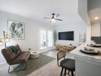 Skip the renovations and move straight into this stylish, contemporary home! Featuring a striking charcoal and white exterior with a spacious covered front porch, this 2 bed 2 bath home offers high-end finishes at an great value.