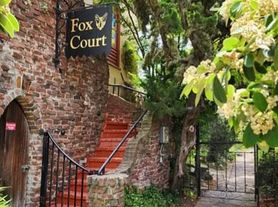 The unit is 600 sq. ft, and includes a renovated kitchen with a dishwasher. This second floor unit is filled with light and has Craftsman architectural details, including wooden beams, an additional sleeping loft, and a decorative fireplace. There is a quiet courtyard garden and laundry is available on the premises; utilities are not included.
