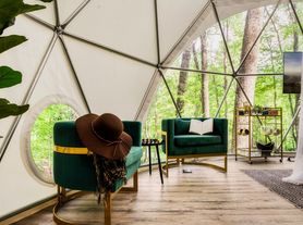 While this luxury property offers modern amenities, it is still set in nature, so expect to encounter wildlife and natural sounds like trains, rain, and birds. Fires should only be started in the designated fire pit area. A signed liability waiver is required after booking due to the pond and other amenities. The property features two domes, and guests are encouraged to respect each other's privacy.