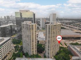 Stunning 19th-floor corner unit offering panoramic skyline and sunset views from nearly every room. This pristine 2-bedroom, 2-bath residence has been fully remodeled from floor to ceiling. The crisp kitchen features quartz counters, marble backsplash, stainless appliances, & recent cabinetry. A beautiful granite tile entry flows into the kitchen, while wood like floors enhance the living, dining & bedrooms. The open layout provides balcony access from the living room and both bedrooms, maximizing the Amazing views. The large primary bedroom w incredible views & a spacious walk-in closet leading to a newly remodeled bath with double sinks and a separate shower with frameless-glass. The secondary bath is also fully updated w new cabinetry, counters & New Shower. Enjoy full-service high-rise living w/ valet parking, doorman, porter, 24-hour security, & a heated pool. Exceptional location near major freeways, shopping, dining, Downtown, the Texas Medical Center, & the Galleria.
