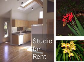 High-end loft style unit features beautiful hardwood floors, high ceilings, large operable skylights, many windows, designer LED lighting, full kitchen with gas range range, built-in microwave convection oven, large refrigerator, Bosch dishwasher, custom built cabinets & counter tops, level 5 finishes on all walls, shared yard/garden. Studio located on top floor of 2 story stand-alone building, washer/dryer & extra storage located on first floor. Very private/quiet.