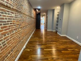 The first floor boasts a living room with exposed brick, half bathroom that is perfect for guests, an expansive kitchen with stainless steel appliances, dual oven with a five burner gas stove and hood range. There is also a dining area at the rear of the home.