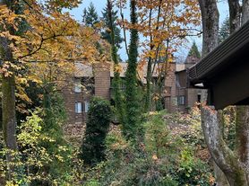 Available now! Private setting for this 2/1.5 home featuring an abundance of natural light, spacious floor plan with vaulted ceilings, kitchen with eating bar, large inviting living room with a fireplace for cool Winter evenings. The main floor opens onto a deck that overlooks a tranquil wooded area and creek. Primary bedroom also has a fireplace with a patio. Excellent location close to transit lines, I-5 and I-405. 2 assigned parking places. Within walking distance to South Center Mall, restaurants and amenities. One small dog ok with additional deposit.